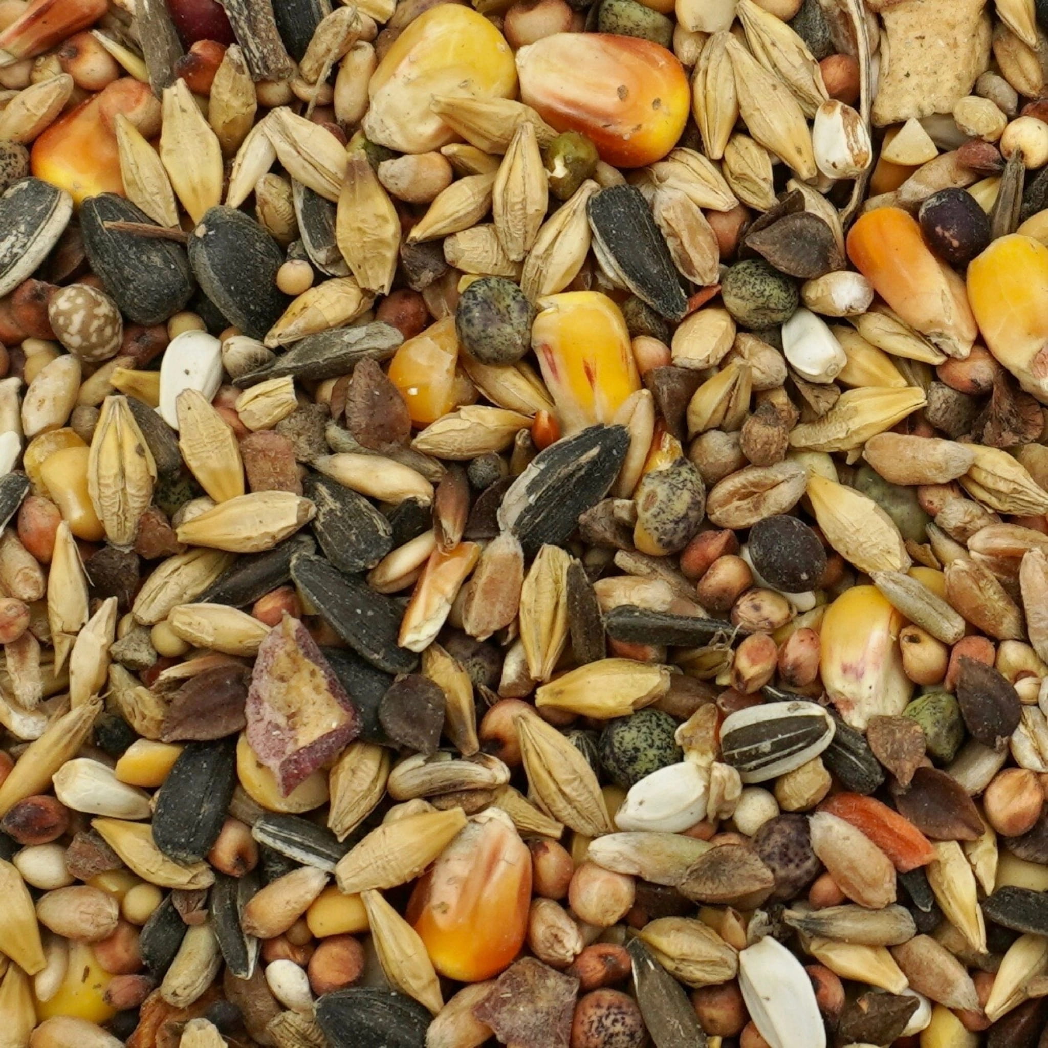 SKŁAD: słonecznik czarny, proso, sorgo, owies, groch ziarno, pszenica, kukurydza, len, łubin, mozga kanaryjska.