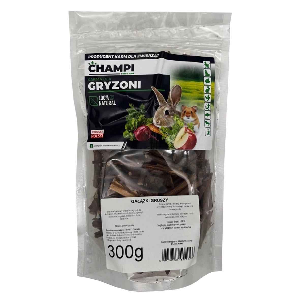 Gałązki gruszy 300g gryzaki dla gryzoni świnki królika szynszyl Champi