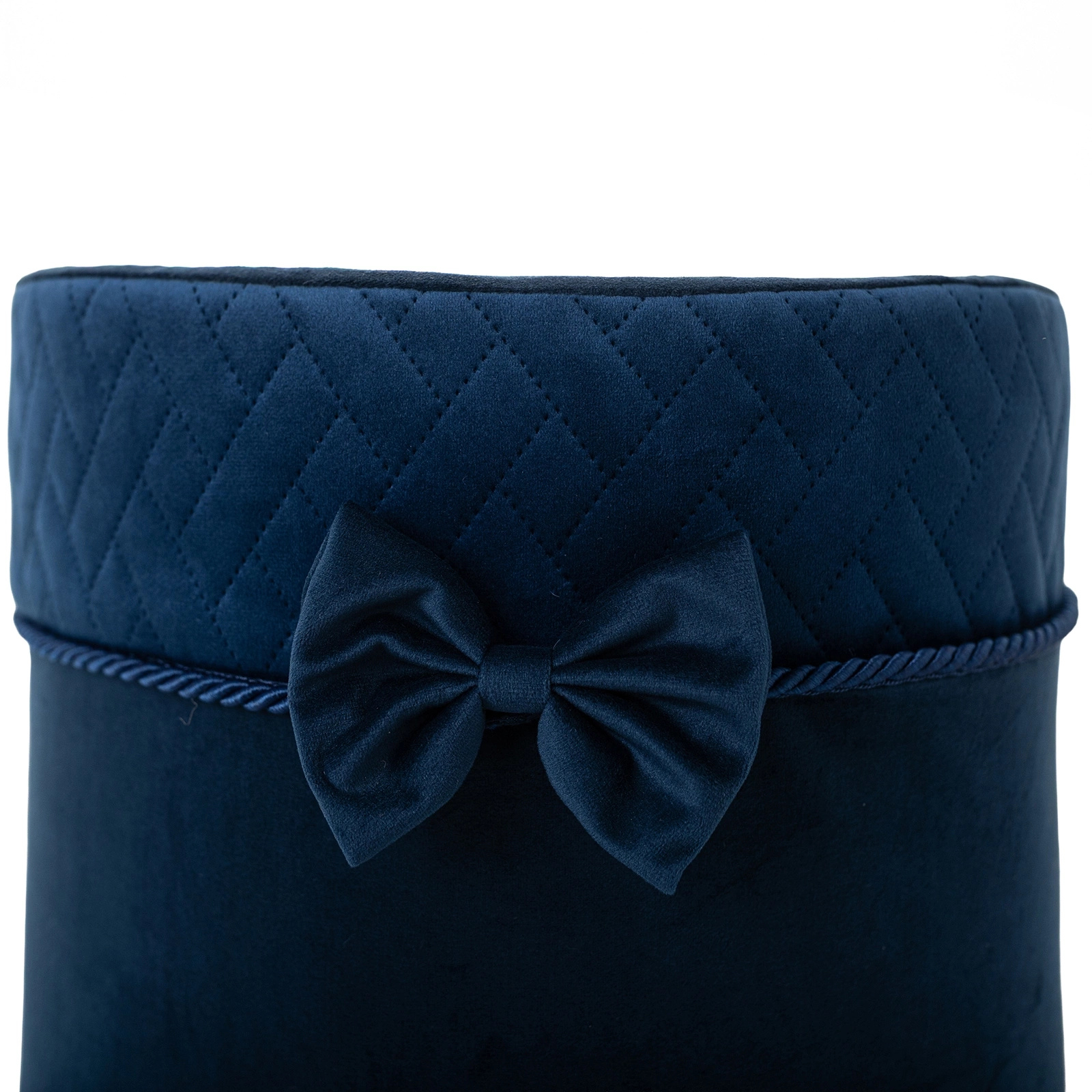Wykonany z aksamitnie gładkiego weluru, prezentuje się niezwykle luksusowo, a subtelna pikowana faktura dodaje mu szlachetnego charakteru. Kosz nie tylko doskonale spełnia swoją funkcję użytkową, ale także staje się piękną dekoracją domu.