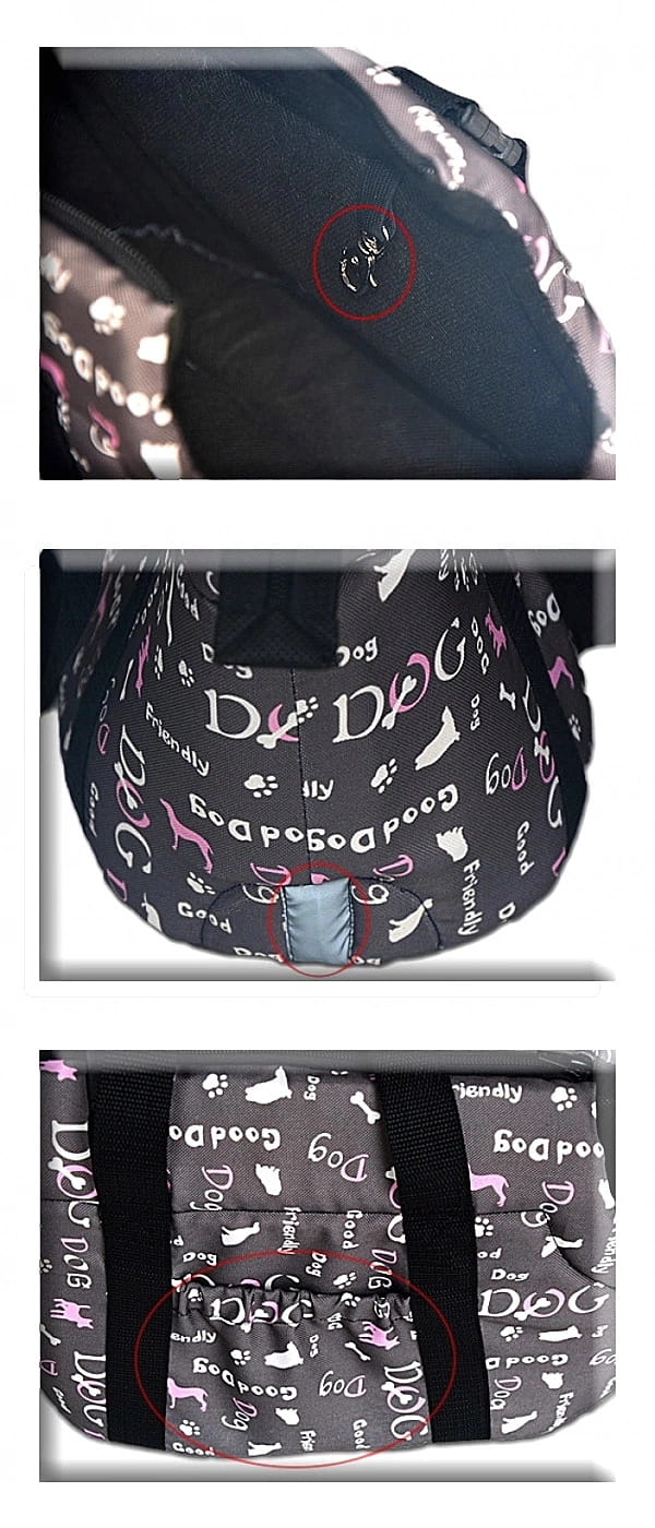 Wewnątrz torby znajduje się karabińczyk na elastycznej smyczce który umożliwia przypięcie zwierzaka za obrożę.