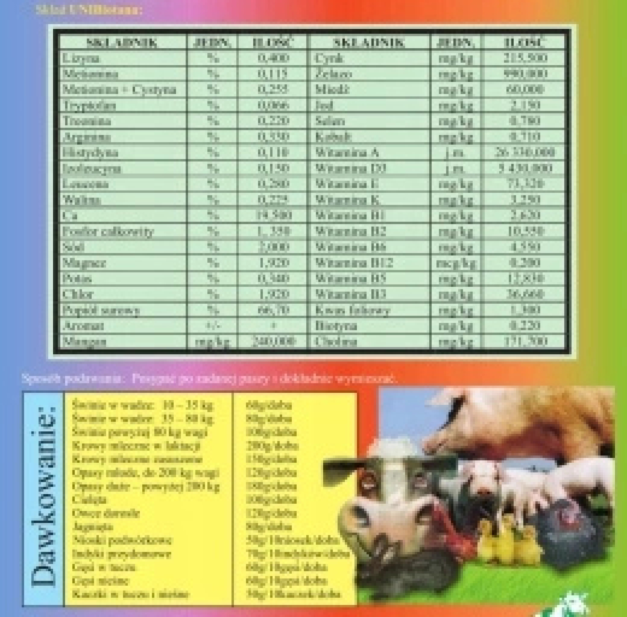 Poziom zawartych substancji został tak dobrany aby mógł dobrze służyć różnym gatunkom zwierząt.